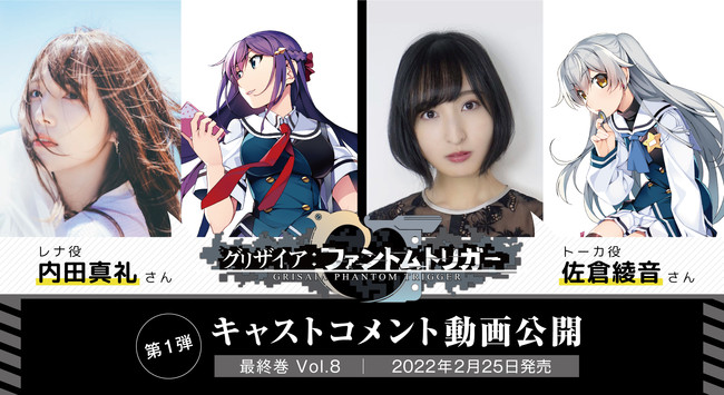 株式会社ブシロード(本社:東京都中野区 代表取締役社長:橋本義賢、以下、ブシロード)は、子会社である株式会社フロントウイングラボ(本社:東京都千代田区 代表取締役社長:山川竜一郎、以下、フロントウイングラボ)がプロデュースするグリザイアシリーズにつきまして、内田真礼、佐倉綾音、名塚佳織、種崎敦美ほか豪華キャストが出演するフロントウイングの大人気PCゲーム『グリザイア:ファントムトリガー』の最終巻vol.8(2022年2月25日(金)発売)に向けて、キャストからのコメント動画が公開されましたことをお知らせいたします。