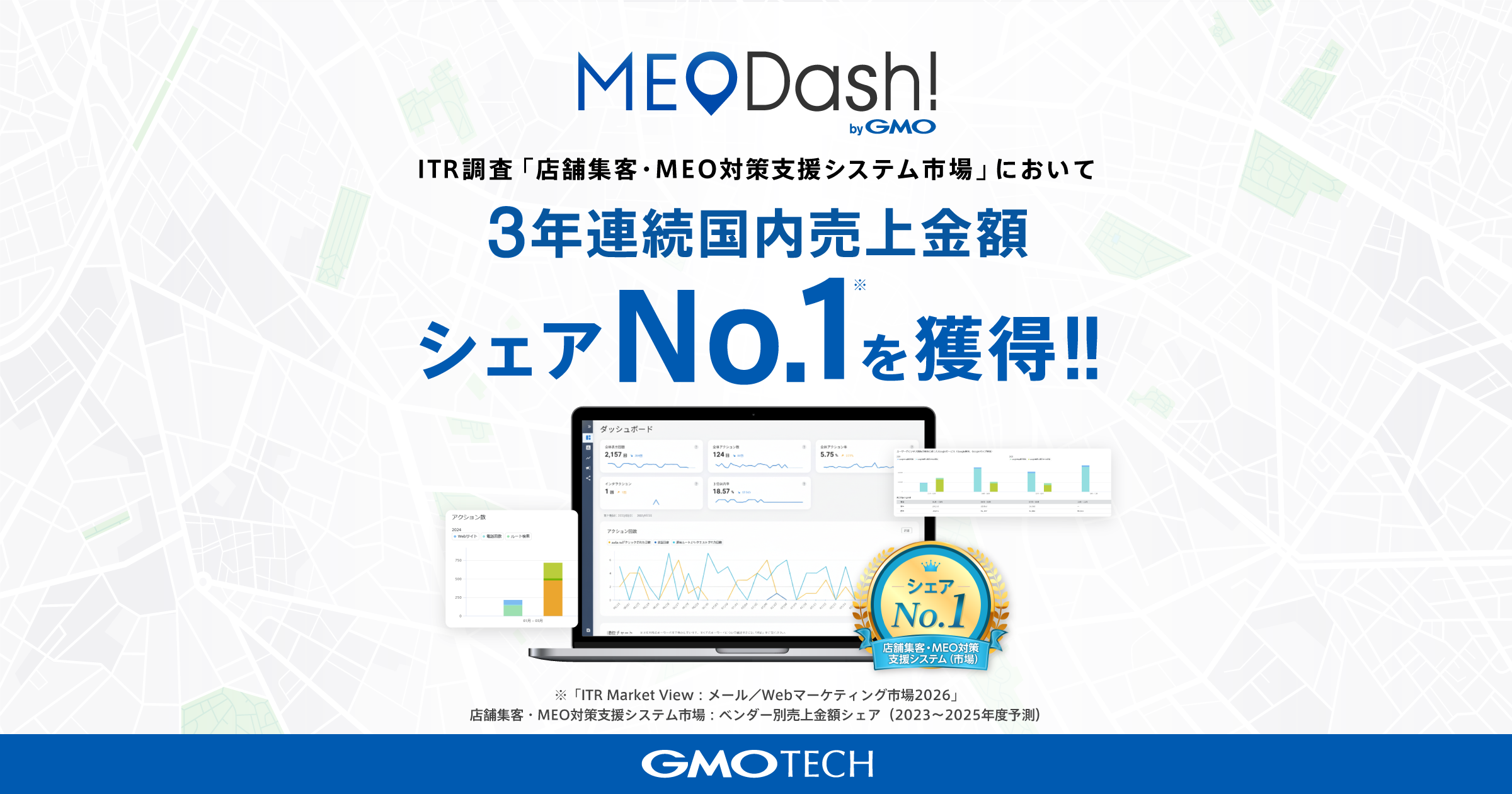 GMO TECHの「MEO Dash! byGMO」ITR調査「店舗集客・MEO対策支援システム市場」において3年連続国内売上金額シェアNo.1を獲得