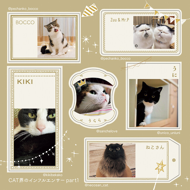 このシールブックを手掛けた猫ライター西村依莉さんによると、最近のインフルエンサー猫は純血種だけでなく、保護譲渡された猫さんや偶然拾われた猫、美しい猫から面白顔の猫、仔猫、おばあさん猫まで、多岐にわたるそう。