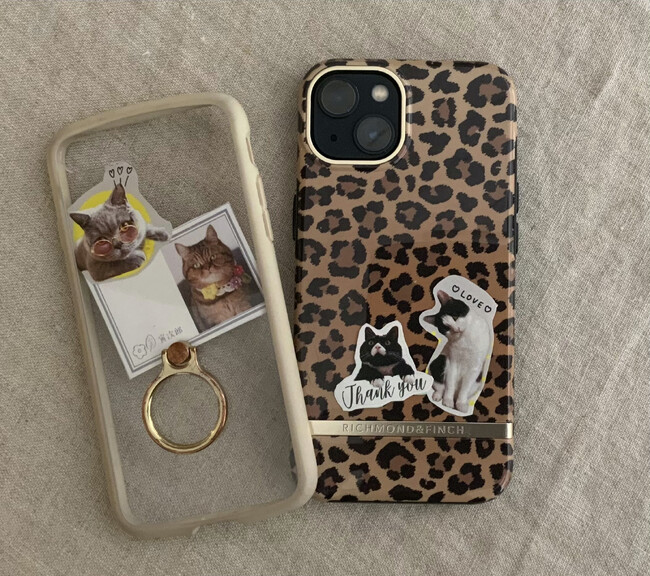 スマホやタブレットのデコレーションにも猫ちゃんたちのシールは大活躍! スマホにそのまま貼ったり、透明ケースに挟んだり、何枚かコラージュしてもかわいくまとまる大きさです。