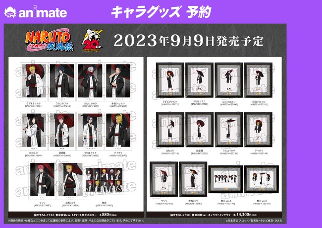 2023年9月9日(土)よりアニメイト対象店舗にて「『NARUTO-ナルト- 疾風伝』20周年記念 アニメイトフェア in 2023」の実施が決定いたしました。