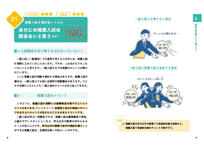 総合型選抜・学校推薦型選抜を中心とする推薦入試の概要と対策方法を、スピーディーに理解することができます。