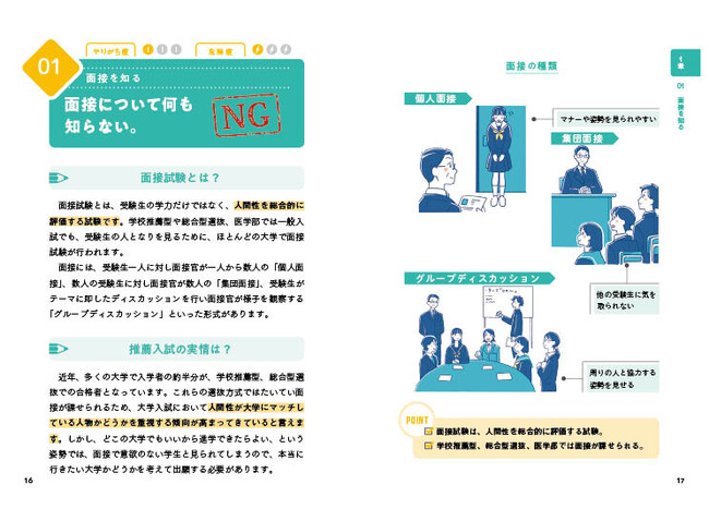 合格率97.5%の総合型選抜専門塾AOIのバックアップのもと、受験生が?やりがち? ?思い込みがち?なNG例を厳選。これまでの指導の蓄積データから導かれた、総合型選抜・学校推薦型選抜で合格を目指すなら絶対に知っておきたいポイントが詰まっています。