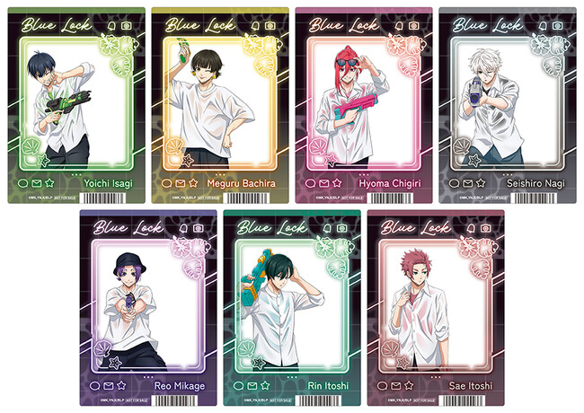 そして、全国アニメイト(通販除く)にて8月3日〜8月25日まで開催する「TVアニメ『ブルーロック』Enjoy Summer フェア 第2弾」では、期間中、『ブルーロック』関連のグッズをご購入・ご予約内金1,100円(税込)毎、または書籍・CD・Blu-ray・DVDをご購入・ご予約(内金1,100円〈税込〉以上必須)1点毎に、特典「SNS風カード(全7種)」を1枚プレゼントいたします。特典には第1弾、第2弾ともに、水鉄砲で遊ぶ潔や凪など7人の夏らしい描き下ろしイラストを使用しています。