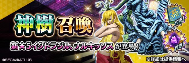 ▼「生命サバイバ」を所持した新★5悪魔が登場!“回数限定イグドラジル召喚”“回数限定ナルキッソス召喚”