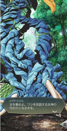 「神樹の書」を消費してご利用いただける召喚です。“回数限定イグドラジル召喚”では、「神樹 イグドラジル」を、“回数限定ナルキッソス召喚”では「神樹 ナルキッソス」を召喚できます。