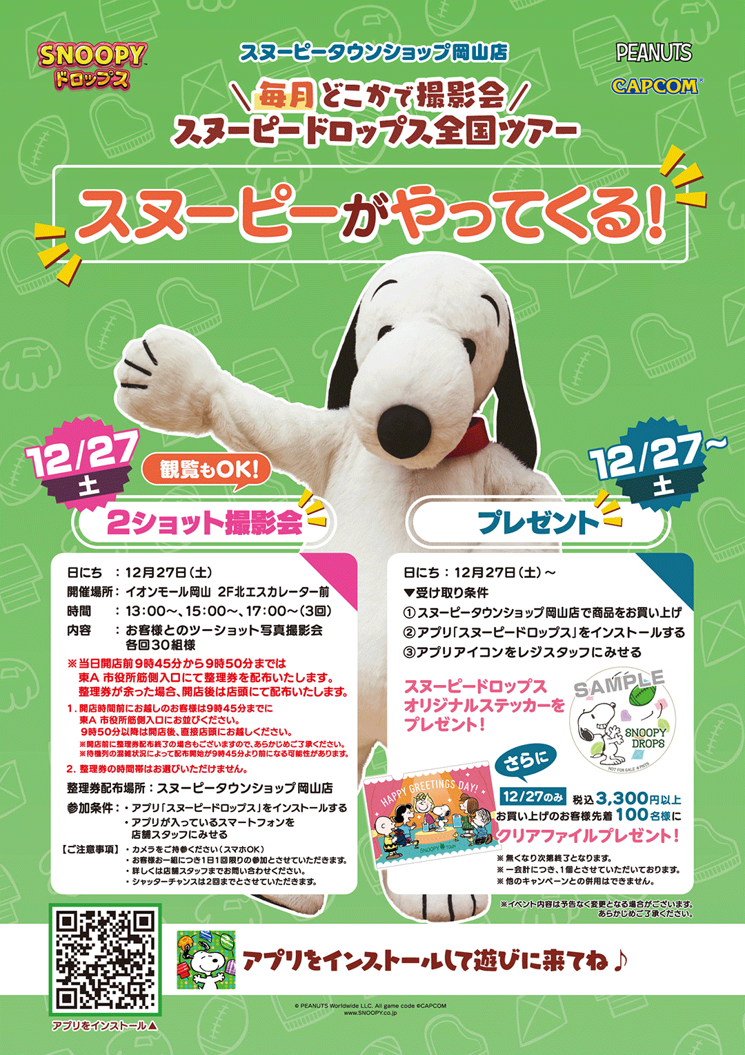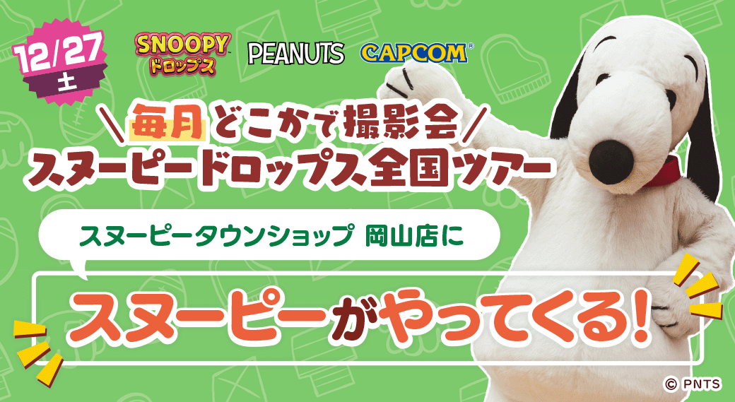 『スヌーピードロップス』<毎月>スヌーピーに会える”グリーティングイベント” 12月は岡山で開催!