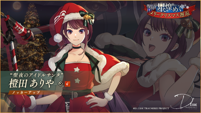 株式会社ブシロード(本社:東京都中野区、代表取締役社長:橋本義賢)は、株式会社サムザップ(本社:東京都渋谷区、代表取締役:日高裕介)、株式会社ドリコム(本社:東京都品川区、代表取締役社長:内藤裕紀)と共同で企画するゲームアプリ「D_CIDE TRAUMEREI/ディーサイドトロイメライ」にて、ストーリーイベント「復刻 聖なる夜に潜むもの」と、「復刻 星煌めくメリークリスマス邂逅」を開催いたします。報道関係の皆様におかれましては、ぜひ本情報をお取り扱いいただけますよう、お願い申し上げます。
