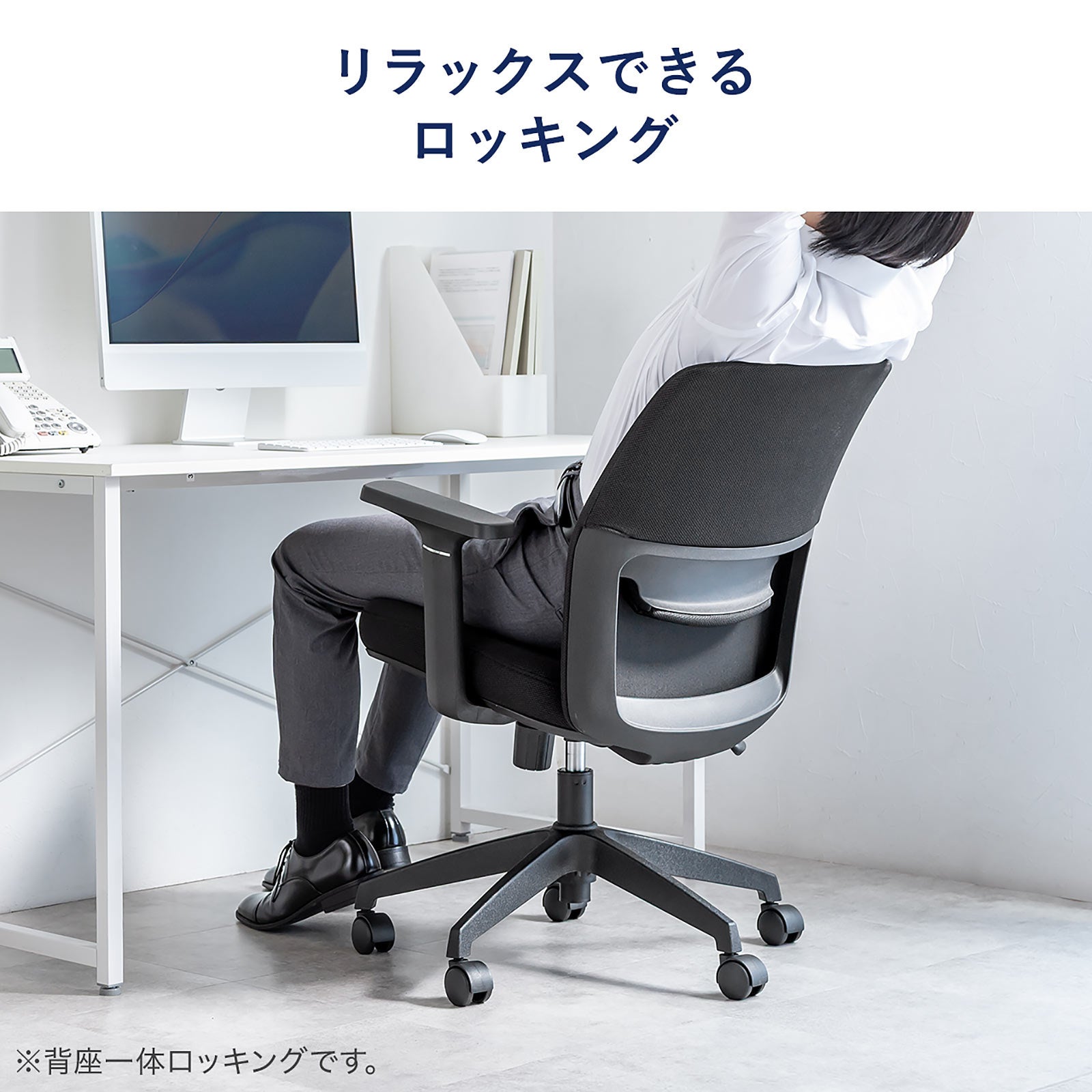 背もたれには通気性に優れたメッシュ素材を採用。熱や湿気を効率的に逃がし、長時間の作業でも蒸れにくく快適に過ごせます。特に夏場やエアコンが効きづらい環境でも心地よさを維持し、集中力を途切れさせません。