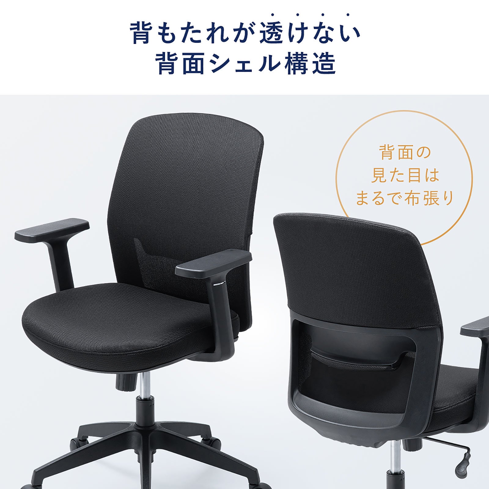 背もたれが透けない背面シェル構造採用のワンランク上のオフィスチェア
