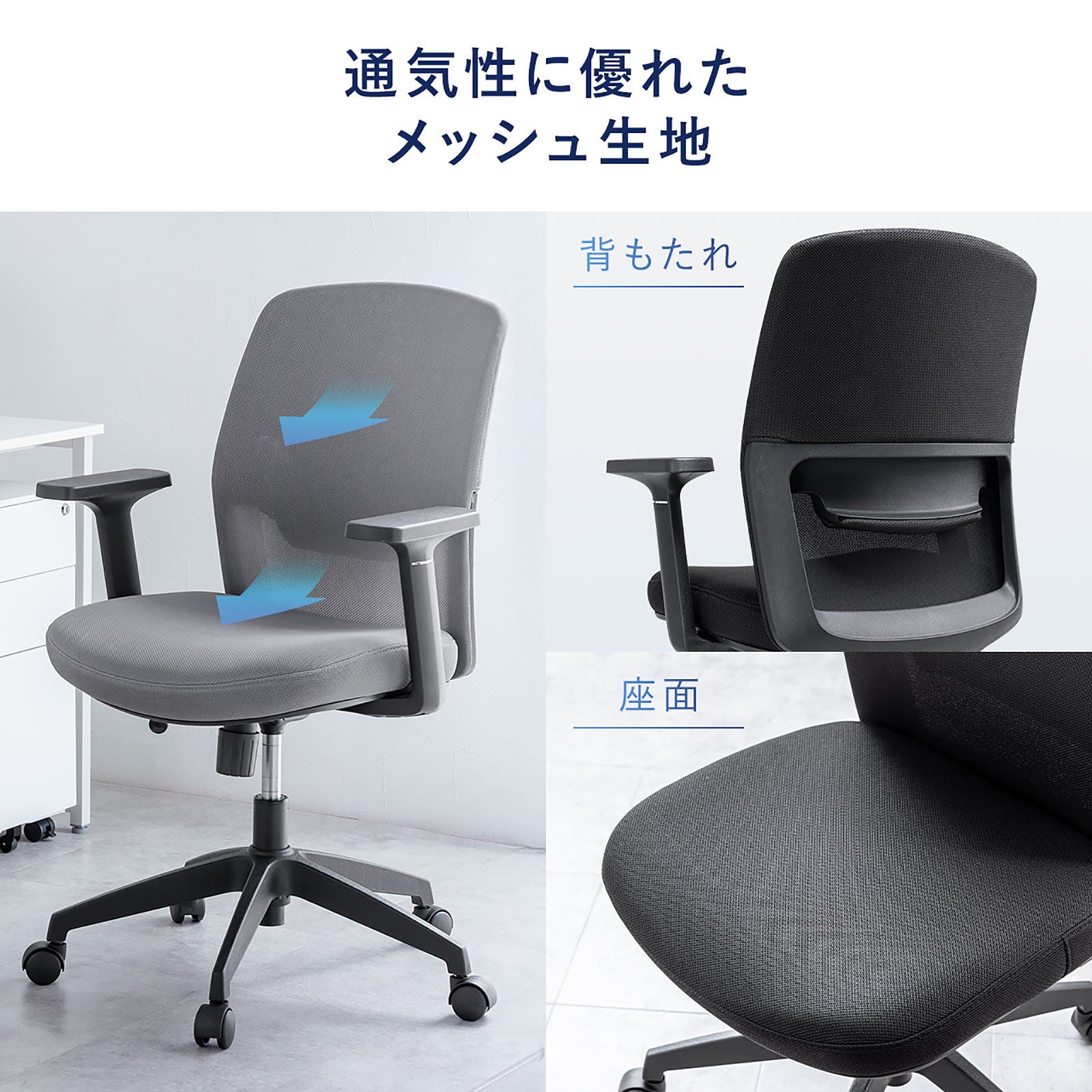 ・通気性に優れたメッシュ生地で快適な座り心地