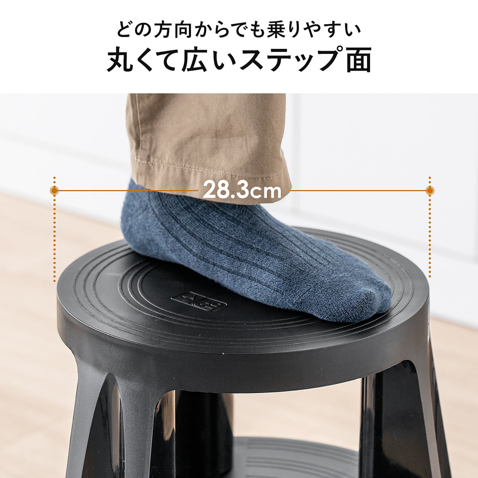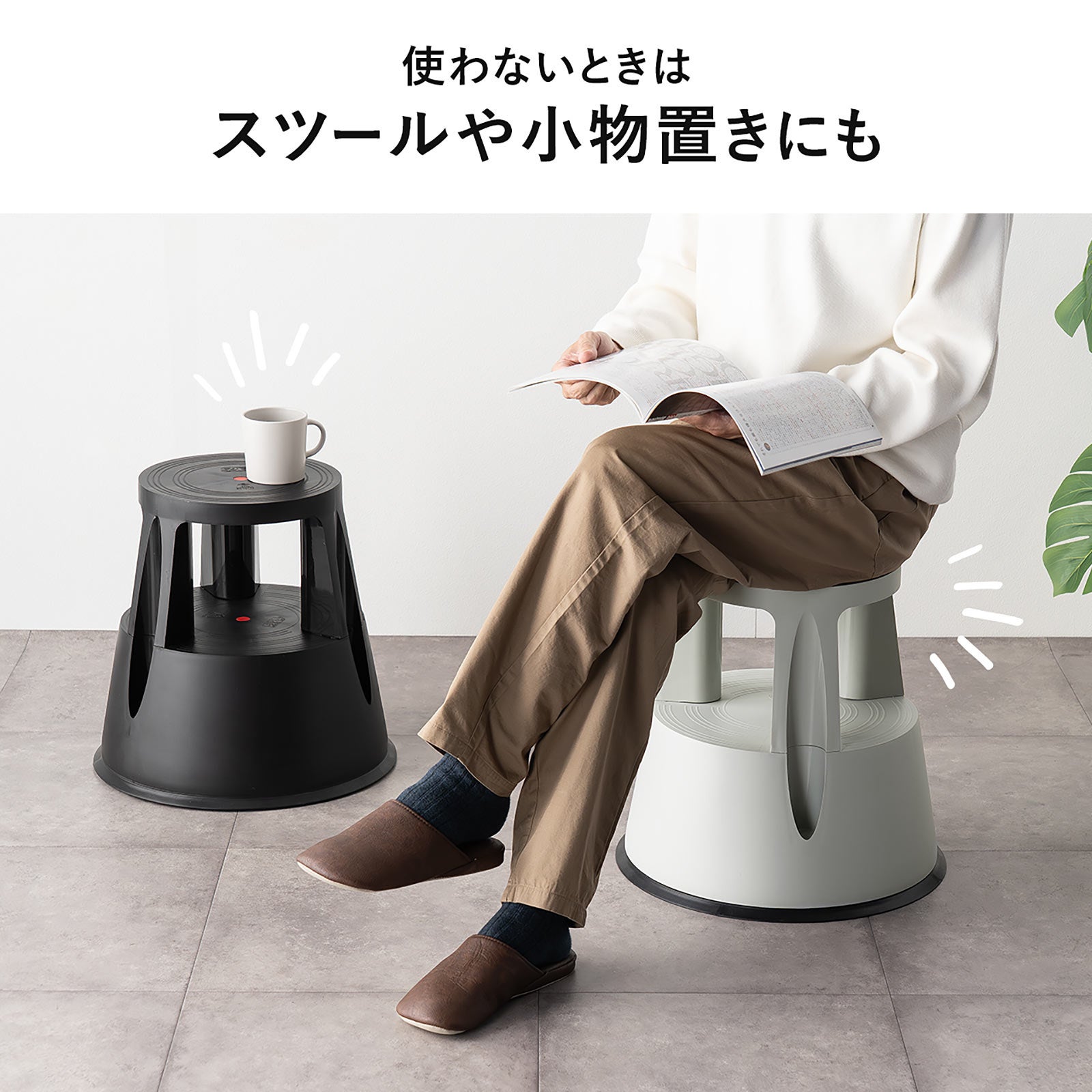 2段式のステップにより、約41.5cmの高さまでしっかりサポート。キッチンや倉庫、オフィスなど、手が届きにくい場所へのアクセスを快適にします。女性や高齢者でも扱いやすい設計です。