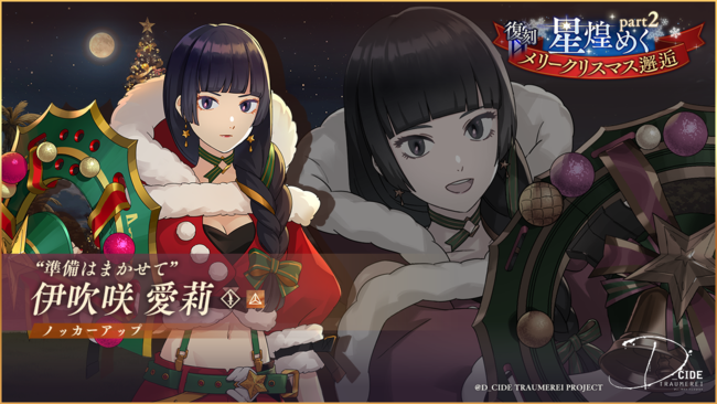株式会社ブシロード(本社:東京都中野区、代表取締役社長:橋本義賢)は、株式会社サムザップ(本社:東京都渋谷区、代表取締役:日高裕介)、株式会社ドリコム(本社:東京都品川区、代表取締役社長:内藤裕紀)と共同で企画するゲームアプリ「D_CIDE TRAUMEREI/ディーサイドトロイメライ」にて、イベント「呪画の悪夢 〜絵に取り憑かれた男〜」と、「復刻 星煌めくメリークリスマス邂逅part2」を開催いたします。報道関係の皆様におかれましては、ぜひ本情報をお取り扱いいただけますよう、お願い申し上げます。