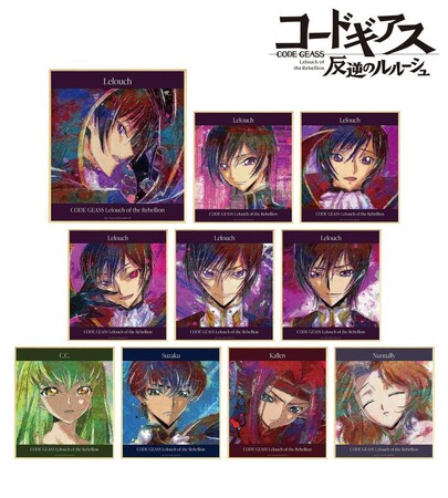 ルルーシュ、C.C.、スザク、カレン、ナナリーを新たなタッチで魅力的に表現し、ミニ色紙に仕上げました。