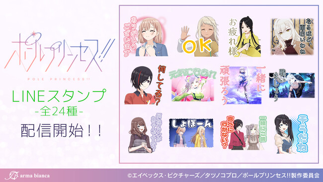 株式会社アルマビアンカは『ポールプリンセス!!』のLINEスタンプを配信いたします。
