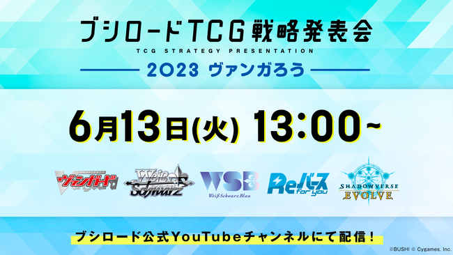 2023年6月13日(火)13:00〜『ブシロードTCG戦略発表会2023 ヴァンガろう』を開催、ブシロード公式YouTubeチャンネルにてライブ配信いたします。