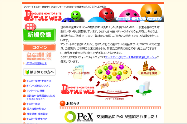 アンケートモニターサイトの「D STYLE WEB」、ポイント交換サイト「PeX」と提携しポイント交換が可能に