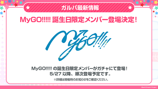 MyGO!!!!!の誕生日限定メンバーもガチャにて登場することが決定いたしました。