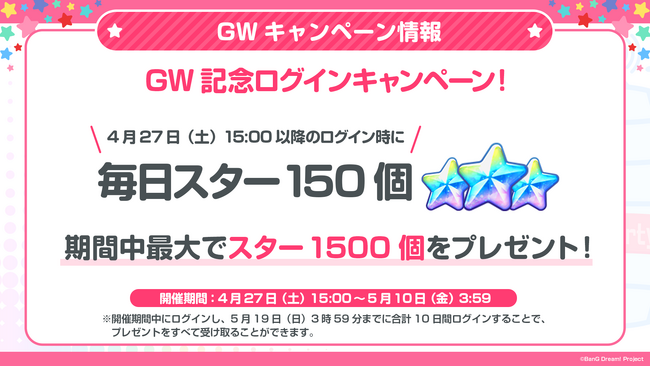 スターを合計最大1500個プレゼントいたします。