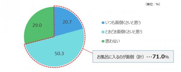お風呂が「面倒くさいと思う」7割 n=497
