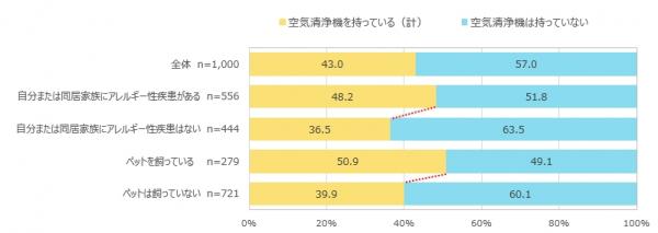 空気清浄機を持っている人は43%、アレルギーを持つ人がいる・ペットがいる世帯では所有率がやや高い〜「空気清浄機に関するアンケート」マーシュ自主調査