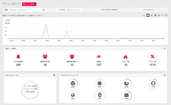 Gigabyte Push - ダッシュボードで通知の効果測定を行うことができます。Gigabyte Push - ダッシュボードで通知の効果測定を行うことができます。