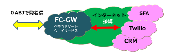 TwilioとFC-GWが接続されることで、Twilio環境において0ABJの電話番号があつかえるようになります。