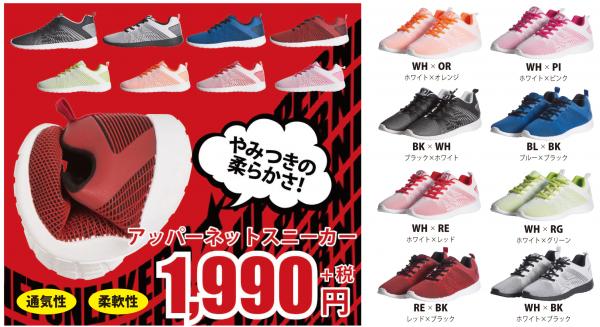 通気性・柔軟性抜群。カジュアルからスポーツまで あらゆるシーンに対応できるスニーカー 「アッパーネットスニーカー」登場!