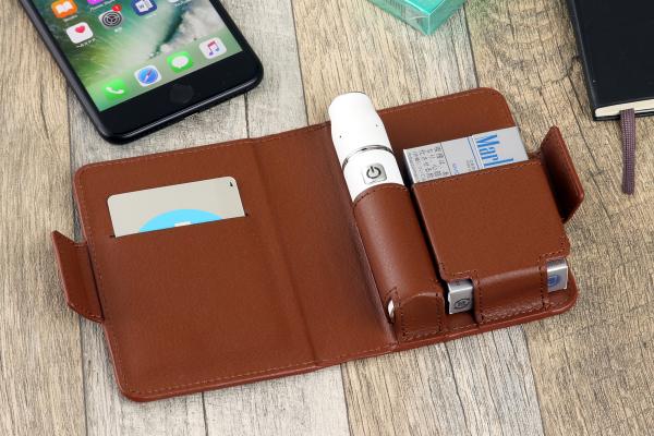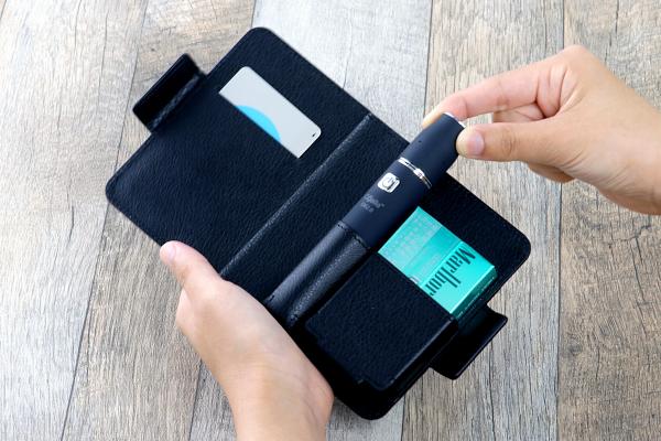 しかし、シガリアCIG2.0の形状はアイコスとは互換せず、アイコス用の収納ケース類は適用できないため、持ち運んで喫煙を楽しむユーザーは不便を強いられていました。そこで、シガリアCIG2.0を安全に収納し、アイコスのヒートスティックも同時に持ち運べる、シガリアCIG2.0専用の収納ケースを開発しました。シックなシボ加工済みレザー調デザインで、2種類のカラーを用意しています。