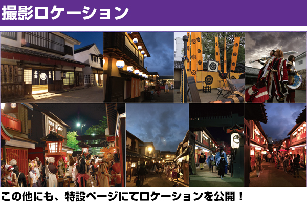 活気あふれる町並みや、艶やか雰囲気の吉原エリアといった江戸の町をはじめ、ハイカラでレトロな雰囲気の明治通りエリアなど、様々な映画、ドラマ撮影に使用されるオープンセットで撮影する絶好の機会です!