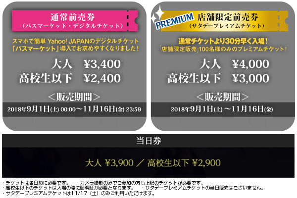 ・店舗限定前売券(サタデープレミアムチケット)大人 4,000円 / 高校生以下 3,000円