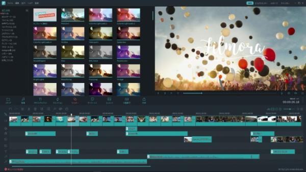 欧米を中心に500万人のユーザーから愛用されているFilmoraは、初心者から中級者向けの動画編集ソフトウェアです。直感的に操作できる操作画面、1000を超える独自デザインのモーションエレメントやモーションテキスト、簡単に埋め込み可能なVFX、世界中で活躍しているミュージシャンの精選された音楽を取り揃えており、様々シーンで動画編集をお楽 しみいただけます。平成30年6月には待望の商用ライセンス発売!