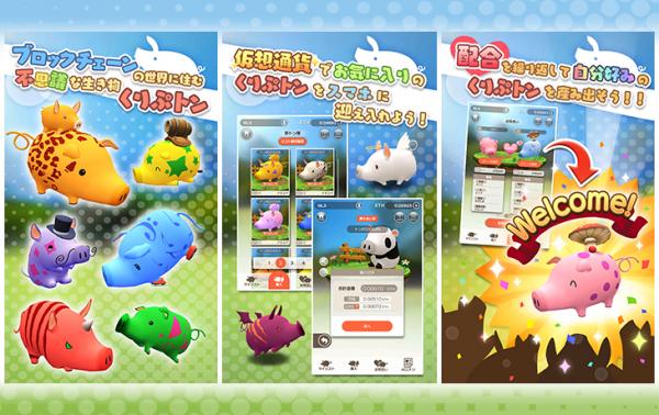 『くりぷ豚(トン)』(以下、くりぷトン)はブロックチェーン上に生息する、ふしぎな生き物。オス・メスの区別はなく、色や形など、その姿はさまざま。ゲーム内に登場する「くりぷトン」の種類は、およそ3京6,000兆通りにのぼります。