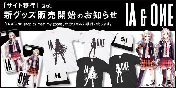 今回新たに「カワセル」に加わりましたのはVOCALOIDTM3 Libraryとして誕生した“クリスタルヴォイス”の遺伝子を持つヴァーチャル・ディーヴァ「IA」と、その妹として誕生した「ONE」になります。大好評いただいていた「IA & ONE shop by meet my goods」から移転&パワーアップし、「カワセル」のアーティストカテゴリーに登場です。