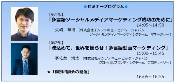 今回のインフォキュービックのセミナーではその二つにフォーカスをあて、「海外向けSNS×動画マーケティング」として、実際のビジネスを推し進めるためのエッセンスをご紹介します。