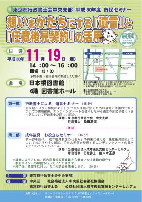 東京都行政書士会中央支部 平成30年度 市民セミナー 「想いをかたちにする『遺言』と『任意後見契約』の活用」 を11月19日に開催