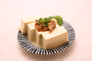 石垣産鰹のハラミの塩漬けを定番の冷奴にのせた、お酒がすすむ1品です。