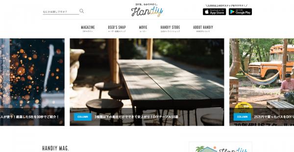 『HANDIY』は、DIYに関心を持つユーザーに対して、HOW TO情報の提供、オンラインショップとの連携等「DIYの困りごとを解決するプラットフォーム」を構築していることが特徴です。