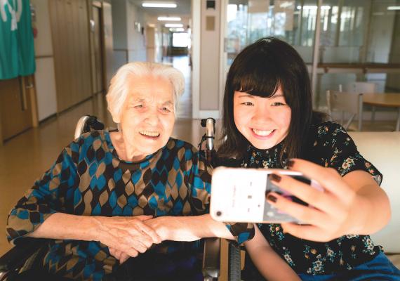 優秀賞 石田 めぐみ 北海道 自撮り ひいおばあちゃんスマホで自撮りしました。