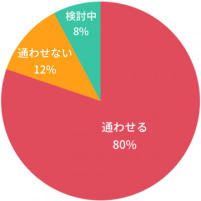 塾の冬期講習に通わせるかどうかについて、「通わせる」が80%、「通わせない」が12%、「検討中」が8%という結果になりました。