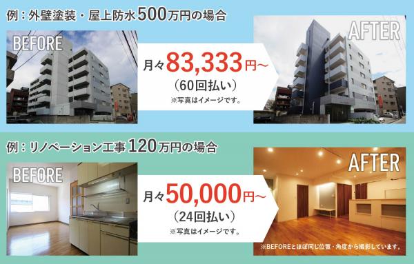 【ケース2】リノベーション工事120万円の場合…月々50,000円〜(24回払い)