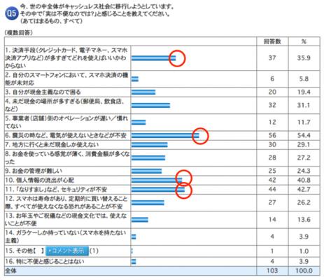 ・「キャッシレス社会で不便だと思うこと」について1位が「震災時の不安」、2位が「なりすましの不安」、3位が「個人情報流出の不安」だった。