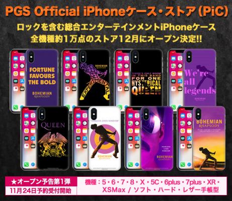 オープン予告第一弾企画といたしまして、11月24日(土)クイーンのボーカリスト”フレディ・マーキュリー”追悼日より池袋パルコで11月26日(月)まで開催されている英国ロック・グッズの祭典「THE BRITISH ROCK」会場にて、初登場の映画「ボヘミアン・ラブソディ」公式iPhoneケースとクイーン公式 iPhoneケース全機種SE/5s/5、6s/6、6sPlus/6Plus、7/8、7Plus/8Plus、X/XS、XR、XSMaxでソフト・ケース、ハード・ケース、レザー手帳型を先行販売。通信販売は、PGSにて予約販売の受付を開始したします。