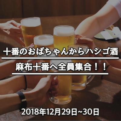 十番のおばちゃんからハシゴ酒実行委員会(所在:東京都港区、実行委員長:エクトル・ペレス)は、2018年12月29日〜30日までの2日間限定で、お得にハシゴ酒と、麻布グルメを堪能できるイベント、『十番のおばちゃんからハシゴ酒』を、東京・麻布十番にて開催いたします。