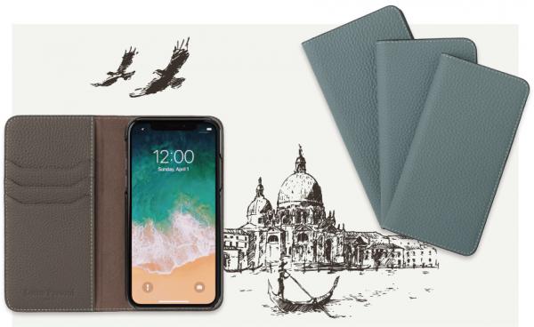 Leather Folio Case for iPhoneは、熟練した職人によるハンドメイドで仕上げられた、高級感あふれるiPhoneケースです。フランス由来のファッションブランドを踏襲したiPhoneケースで、素材であるShrunken Calf(シュランケンカーフ)は、最高品質の革を供給する1864年創業のドイツの名タンナー・ペリンガー社の銘革で、生後6ヶ月以内の仔牛であるカーフを使用しています。艶かしくも優しさを感じさせる独特なシボ感と水や傷に強いタフさが特徴です。その仕上がりはとてもシンプルなデザインで、フォーマルファッションにもカジュアルファッションにも相性抜群です。また、ケース内側には、カードが3枚入るカードポケットとメモや領収証などが入る大きめのポケットがあり、機能的なのも魅力です。