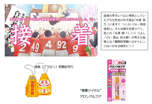 東亞合成株式会社(本店:東京都港区、代表取締役社長:?村 美己志、証券コード4045)は、瞬間接着剤「アロンアルフア」が若者にとって身近な存在になるため若者応援ムービーを公開しています。このたび、その第三弾となる動画『ツキの神様!』を12月13日(木)に公開致しました。