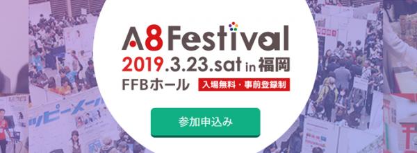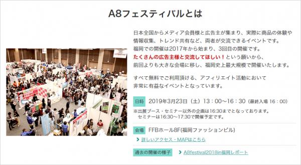 アフィリエイトメディアと広告主の交流イベント 「A8フェスティバル2019 in福岡」参加申込受付開始 〜2019年3月23日(土)FFB ホール(福岡ファッションビル)で開催〜