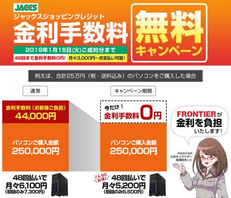 【FRONTIER】<期間限定>ジャックスショッピングクレジット金利手数料無料キャンペーン 開始 〜最大48回払いまでの分割手数料が無料に〜