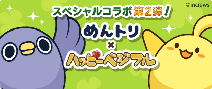 よりパワーアップした「めんトリ」×「ハッピーベジフル」のコラボレーション。面倒だがトリあえず「めんトリ」達に会いに「ハッピーベジフル」を遊んでくださいね♪
