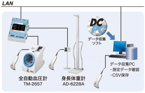 入力作業を省力化し、業務効率を向上させることができます。入力・転記ミスが防止できますので、測定データの信頼性が向上いたします。A&D血圧計、体重計、身長体重計の他、健診で使われる測定機器との接続が可能です。